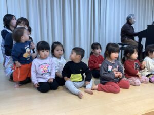 子ども達は、ピアノの演奏に合わせて気持ち良く歌をうたうたいました。