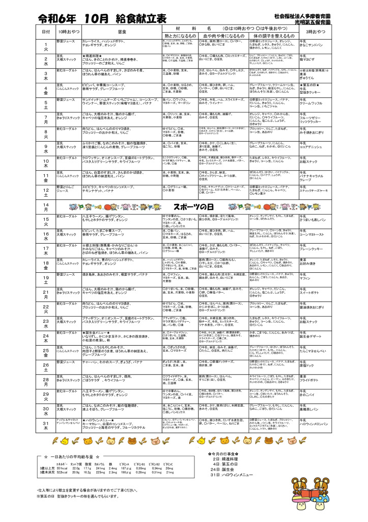 R6年10月献立表(第五)
