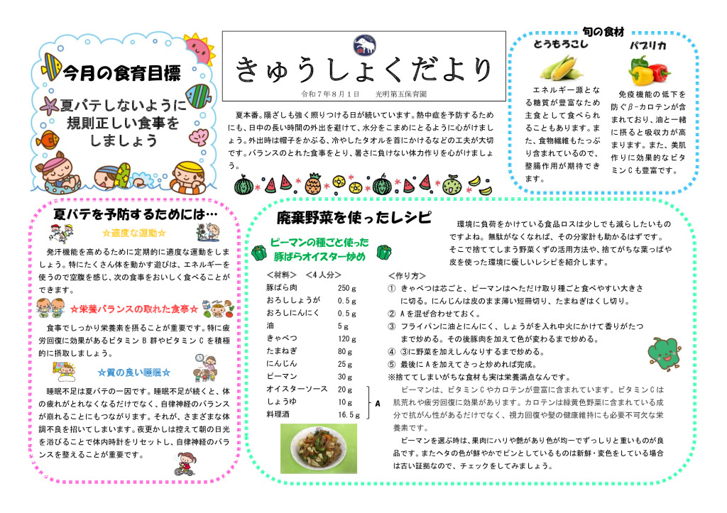R7年8月きゅうしょくだより